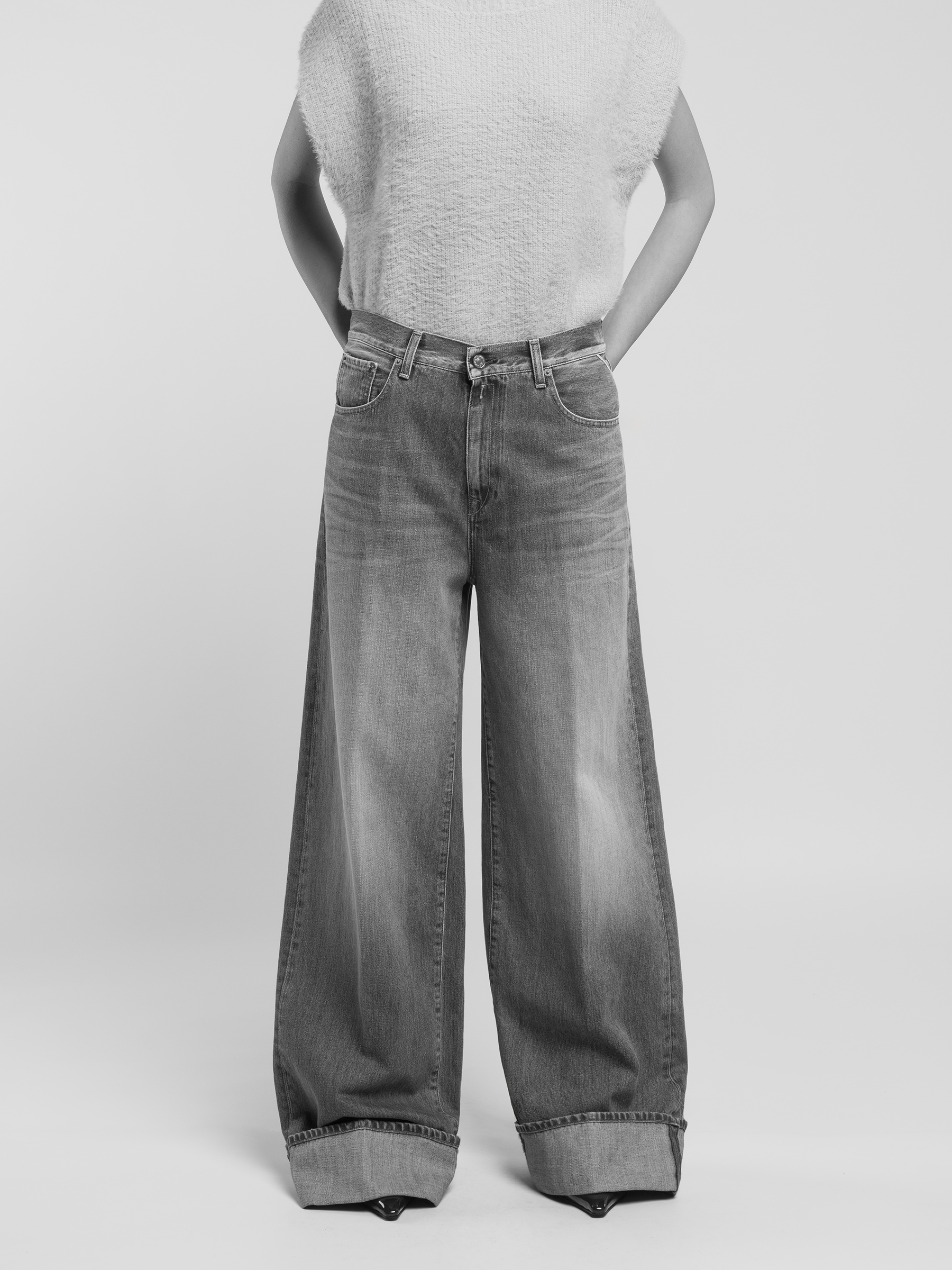 どことなく男性的なスタイルのハイウエストとワイドレッグのデニムは、あらゆるタイプのシルエットにフィットし、快適さとエレガンスのバランスが取れています。